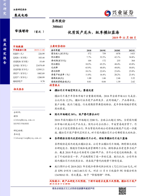 国产替代 圣邦股份 市场分析 模拟芯片 集成电路