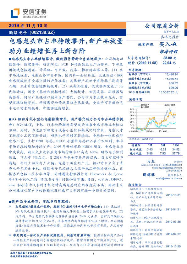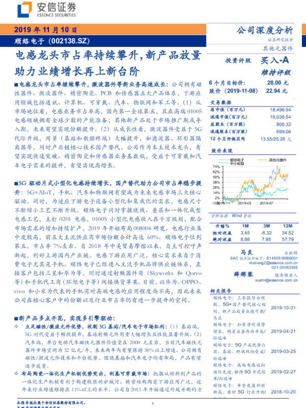 【安信证券】【20191110】电感龙头市占率持续攀升,新产品放助力业绩增长再上新台阶-30页