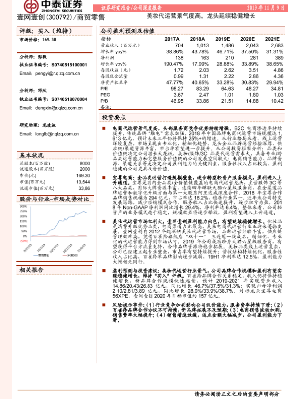 【中泰证券】【20191109】20191109-中泰证券-壹网壹创-300792.SZ-美妆代运营景气度高,龙头延续稳健增长-28页
