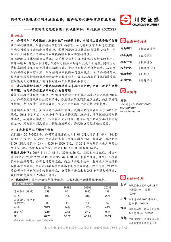 【川财证券】【20191112】中国制造之先进制造:机械基础件:川润股份:战略回归聚焦核心润滑液压业务,国产化替代推动重点行业突破-26页