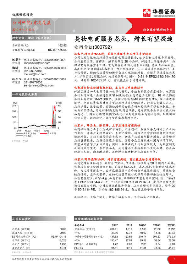 增长预测 壹网壹创 美妆电商 股票分析 首次覆盖