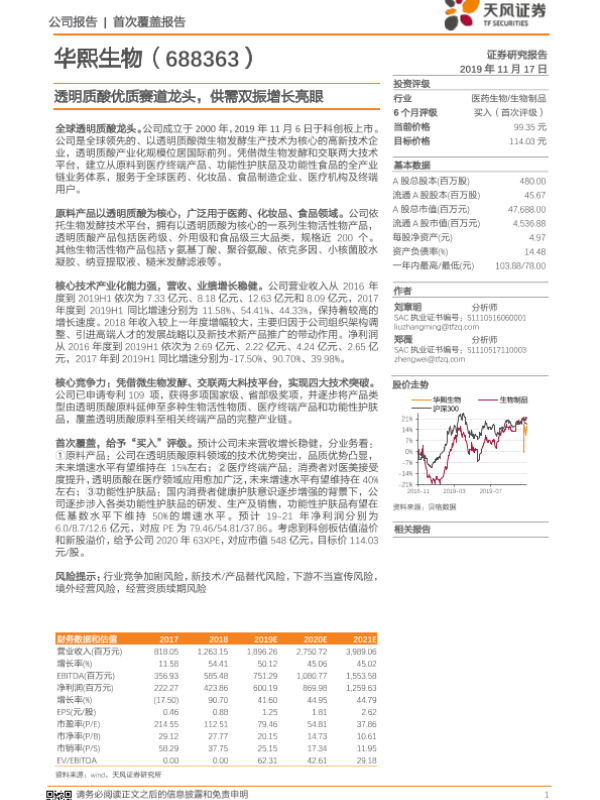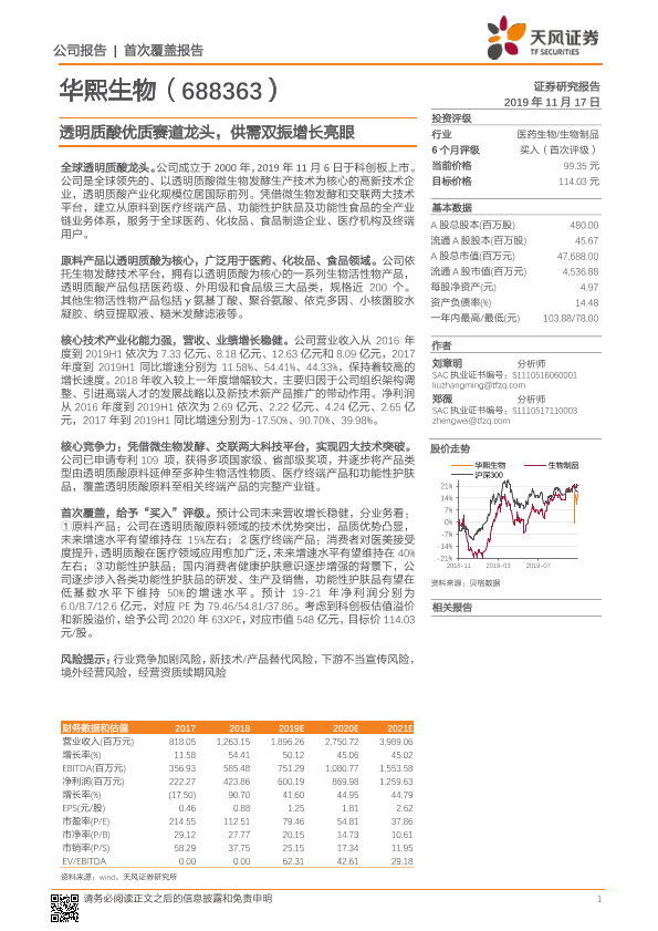 【天风证券】【20191117】20191117-天风证券-华熙生物-688363.SH-透明质酸优质赛道龙头,供需双振增长亮眼-23页