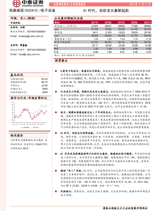 【中泰证券】【20191117】20191117-中泰证券-海康威视-002415.SZ-AI时代,安防龙头重新起航-27页