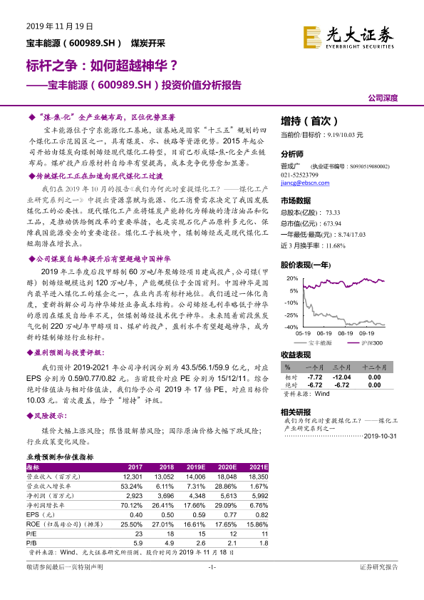 宝丰能源 投资价值 煤化工 煤炭开采 现代煤化工
