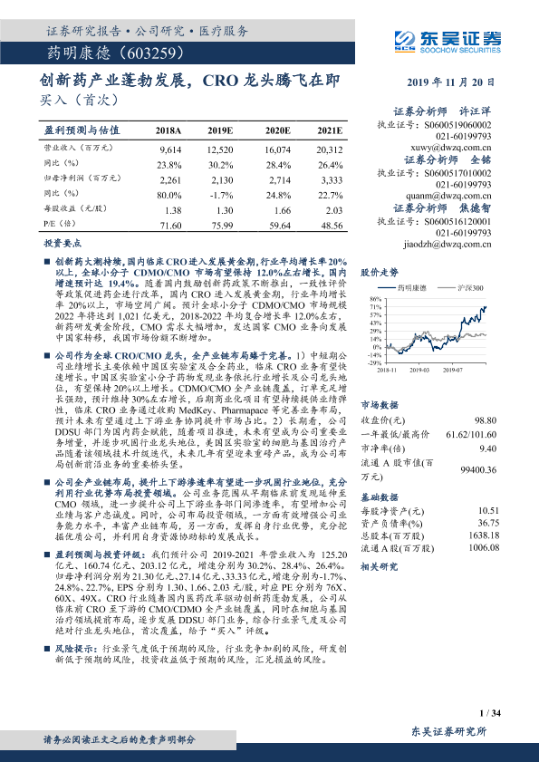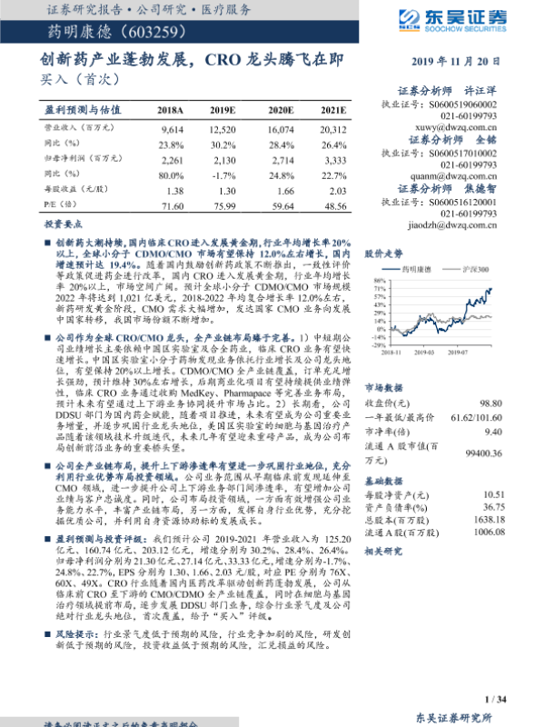 【东吴证券】【20191120】创新药产业蓬勃发展,CRO龙头腾飞在即-34页