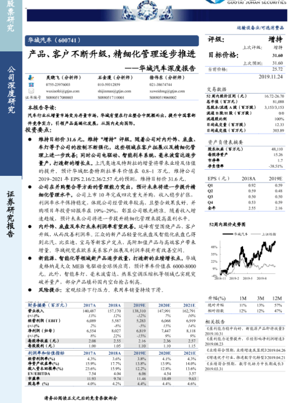 【国泰君安证券】【20191124】华域汽车深度报告:产品、客户不断升级,精细化管理逐步推进-58页