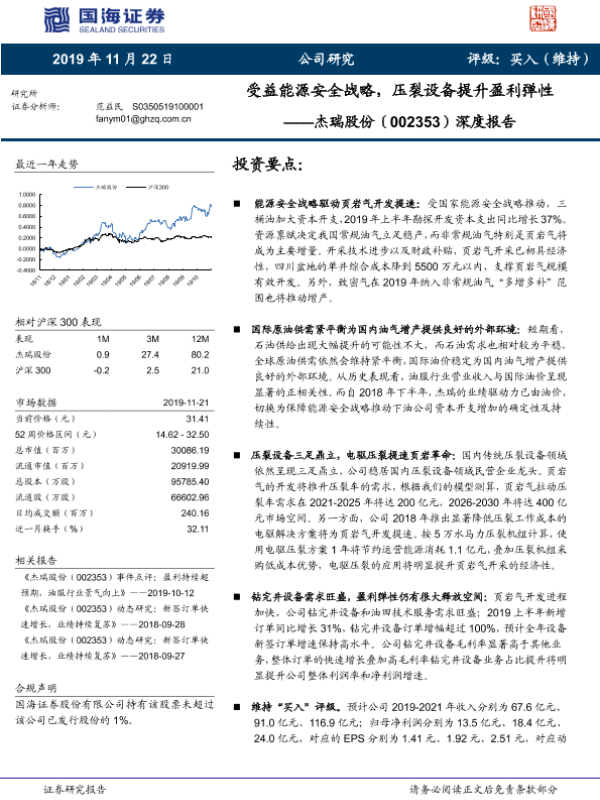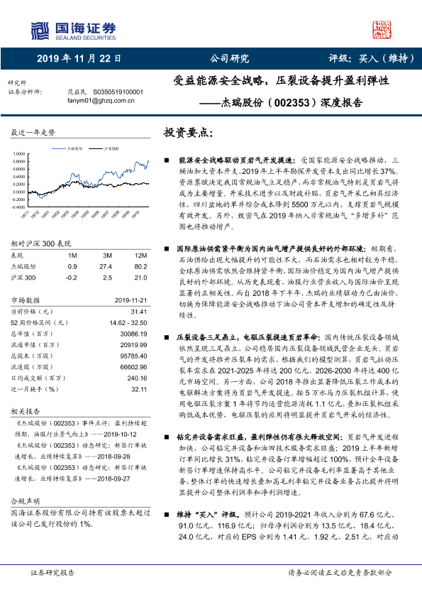 【国海证券】【20191122】受益能源安全战略,压裂设备提升盈利弹性-26页