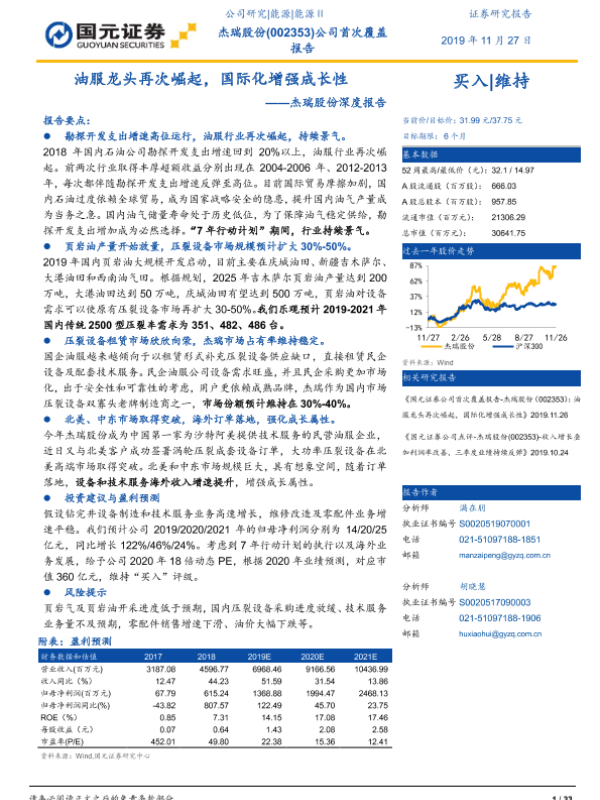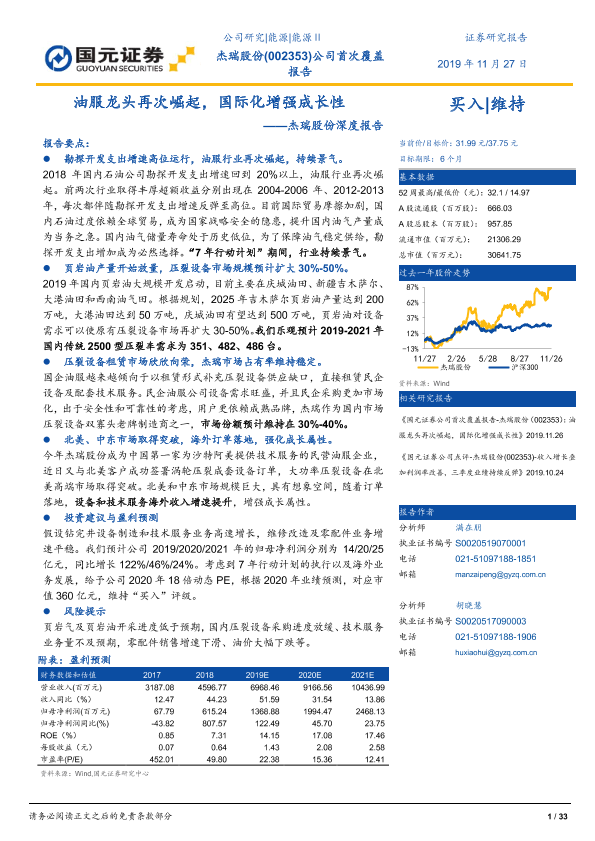 【国元证券】【20191127】杰瑞股份深度报告:油服龙头再次崛起,国际化增强成长性-33页