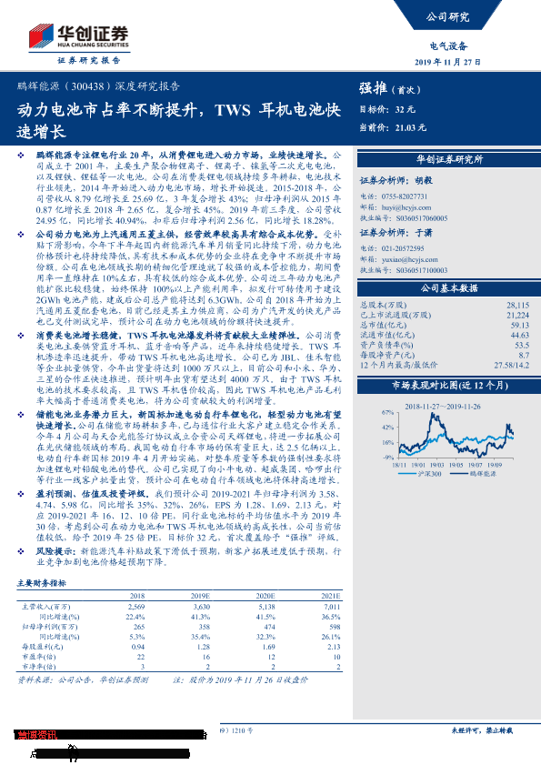 【华创证券】【20191127】20191127-华创证券-鹏辉能源-300438.SZ-深度研究报告:动力电池市占率不断提升,TWS耳机电池快速增长-24页