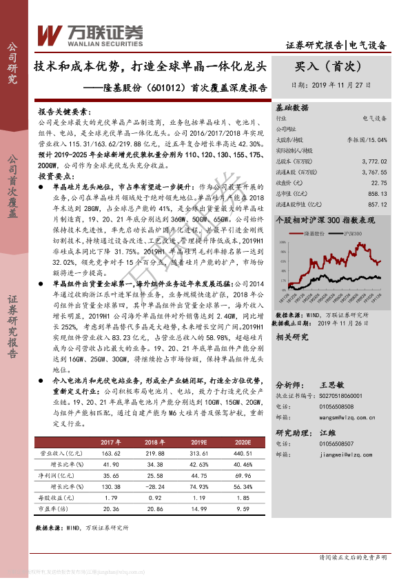 【万联证券】【20191127】20191127-万联证券-隆基股份-601012.SH-首次覆盖深度报告:技术和成本优势,打造全球单晶一体化龙头-32页
