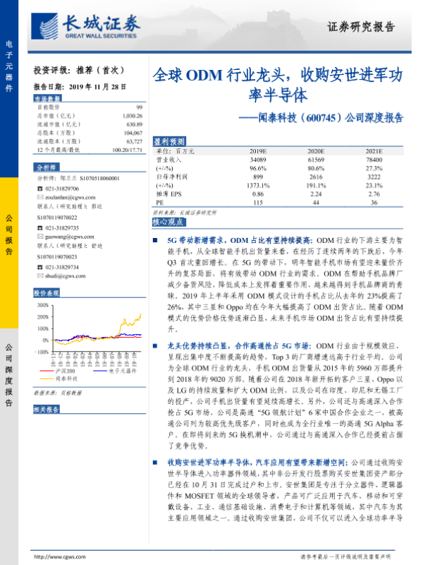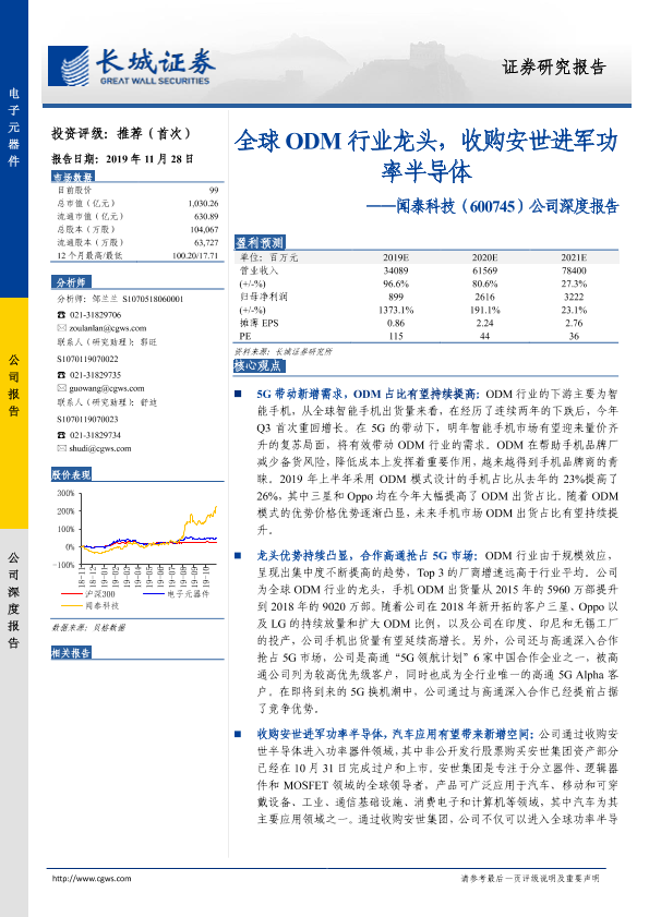 【长城证券】【20191128】20191128-长城证券-闻泰科技-600745.SH-公司深度报告:全球ODM行业龙头,收购安世进军功率半导体-35页