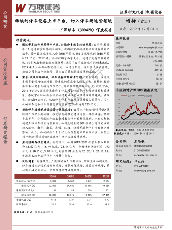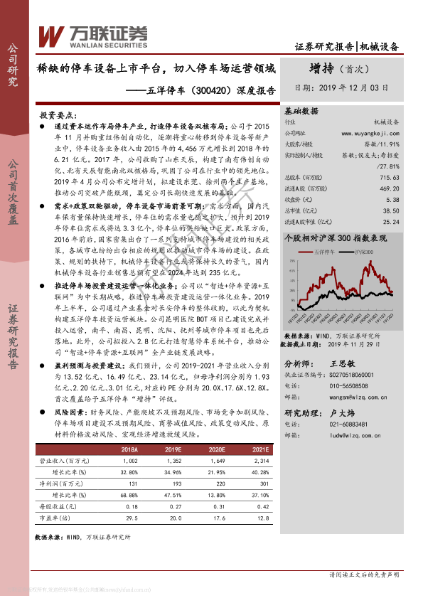 【万联证券】【20191203】20191203-万联证券-五洋停车-300420.SZ-深度报告:稀缺的停车设备上市平台,切入停车场运营领域-33页