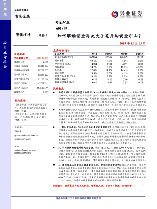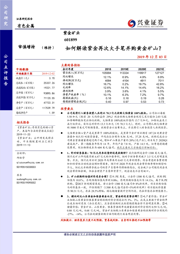 【兴业证券】【20191203】如何解读紫金再次大手笔并购黄金矿山?-11页