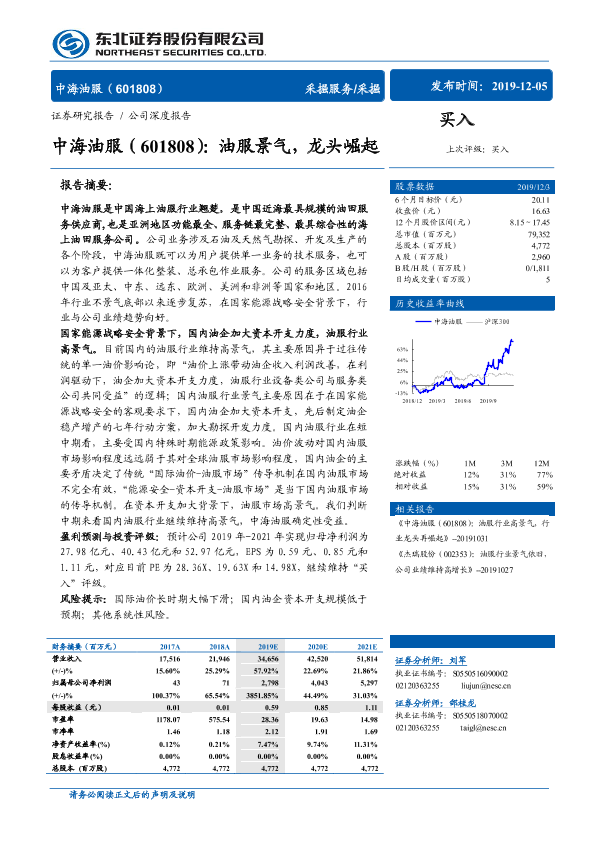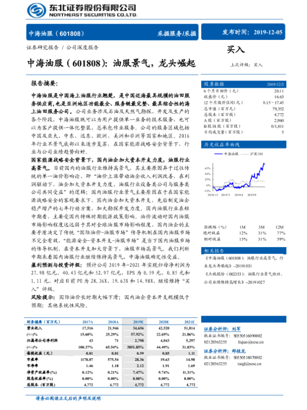 【东北证券】【20191205】中海油服(601808):油服景气,龙头崛起-35页