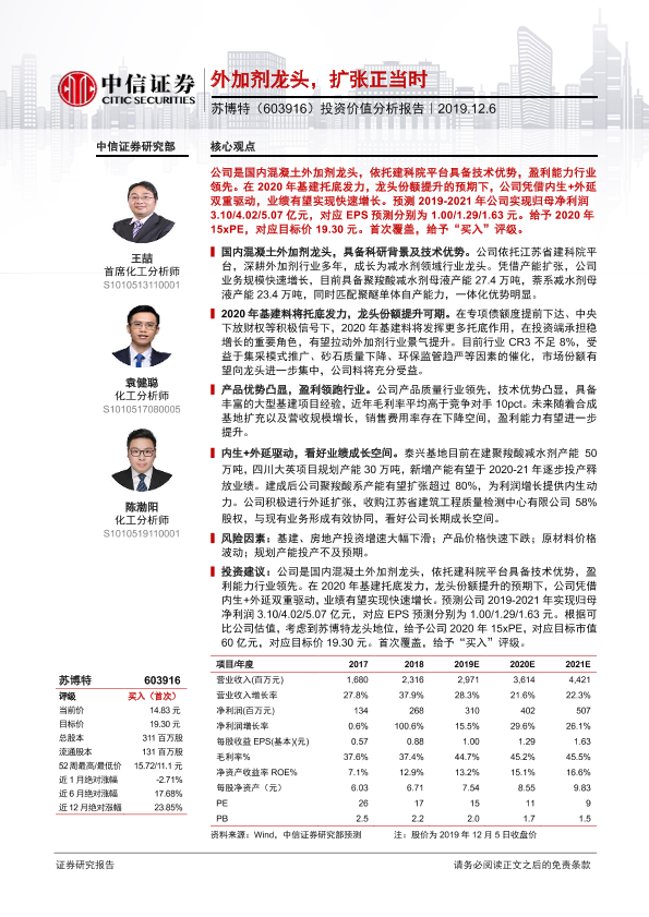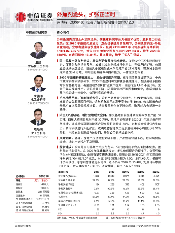 【中信证券】【20191206】20191206-中信证券-苏博特-603916.SH-投资价值分析报告:外加剂龙头,扩张正当时-33页