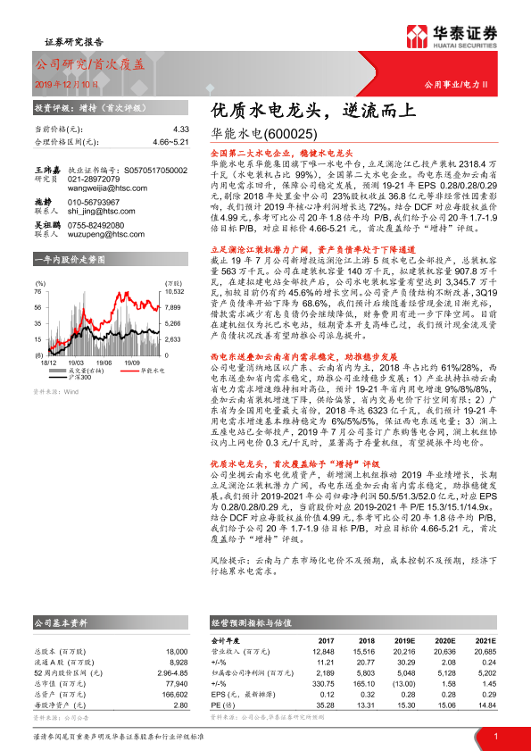 【华泰证券】【20191210】20191210-华泰证券-华能水电-600025.SH-优质水电龙头,逆流而上-25页