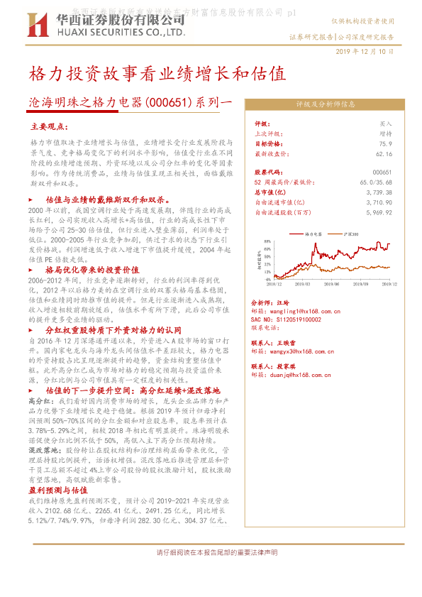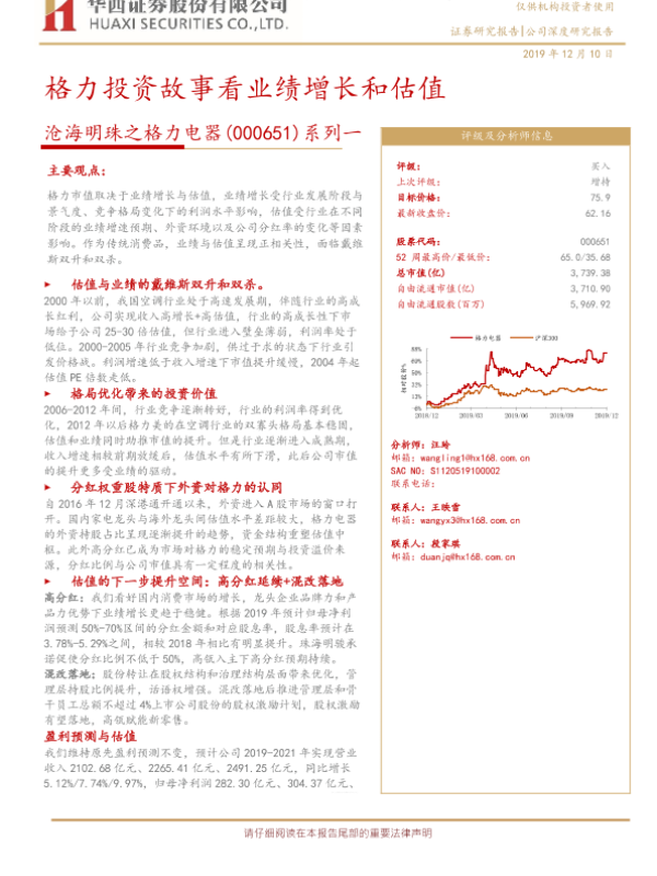 【华西证券】【20191210】沧海明珠之格力电器系列一:格力投资故事看业绩增长和估值-20页
