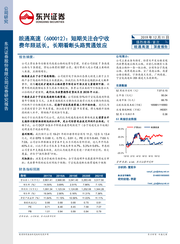 【东兴证券】【20191211】皖通高速:短期关注合宁收费年限延长,长期看断头路贯通效应-19页