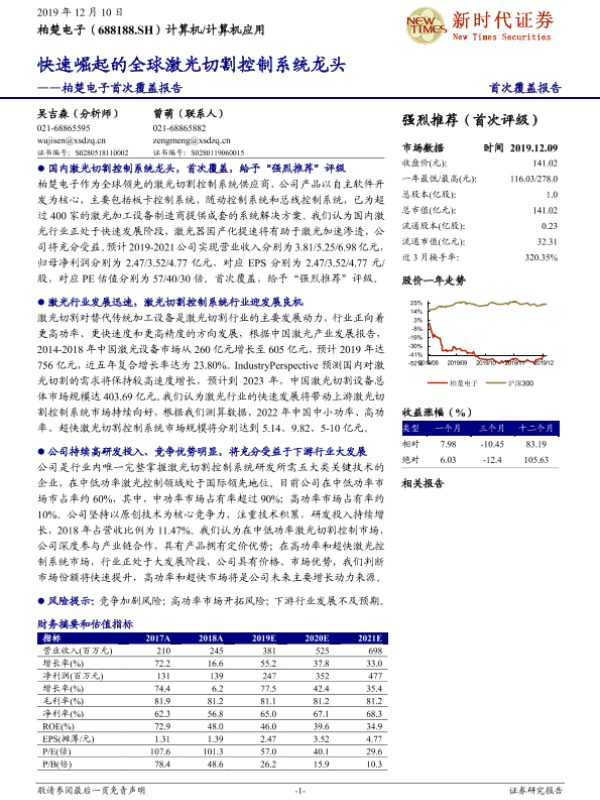 【新时代证券】【20191210】柏楚电子首次覆盖报告:快速崛起的全球激光切割控制系统龙头-28页