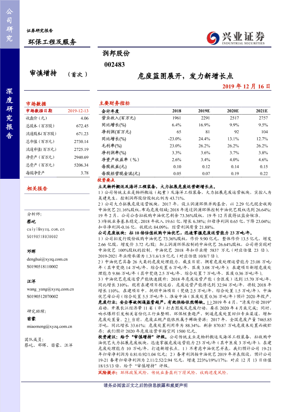 【兴业证券】【20191216】危废蓝图展开,发力新增长点-22页