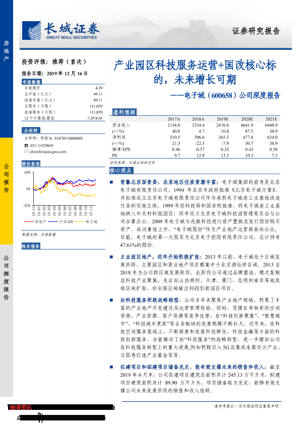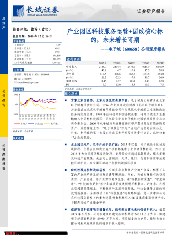 【长城证券】【20191216】20191216-长城证券-电子城-600658.SH-公司深度报告:产业园区科技服务运营+国改核心标的,未来增长可期-27页