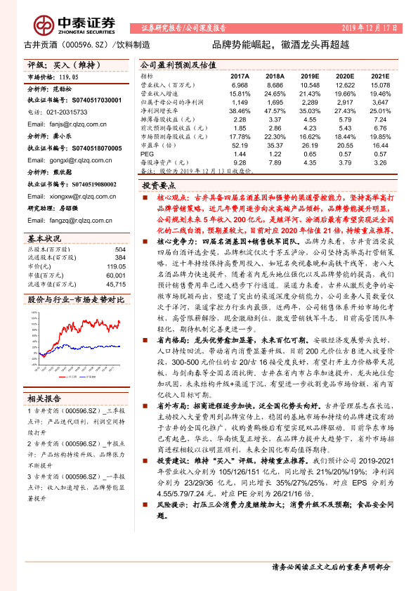 【中泰证券】【20191217】古井贡酒-000596.SZ-品牌势能崛起,徽酒龙头再超越-16页
