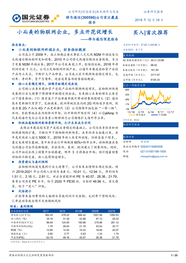 【国元证券】【20191218】移为通信深度报告:小而美的物联网企业,多点开花促增长-25页