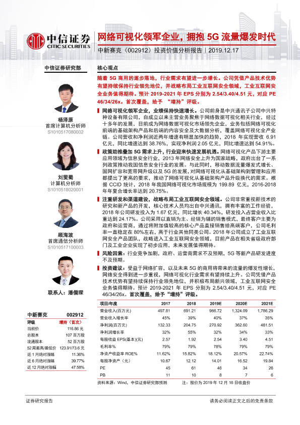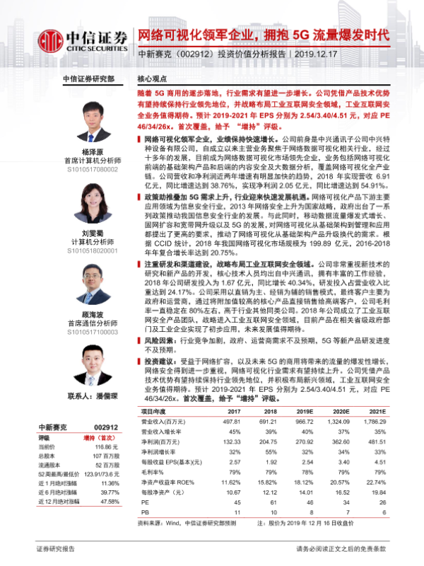 【中信证券】【20191217】20191217-中信证券-中新赛克-002912.SZ-投资价值分析报告:网络可视化领军企业,拥抱5G流量爆发时代-28页