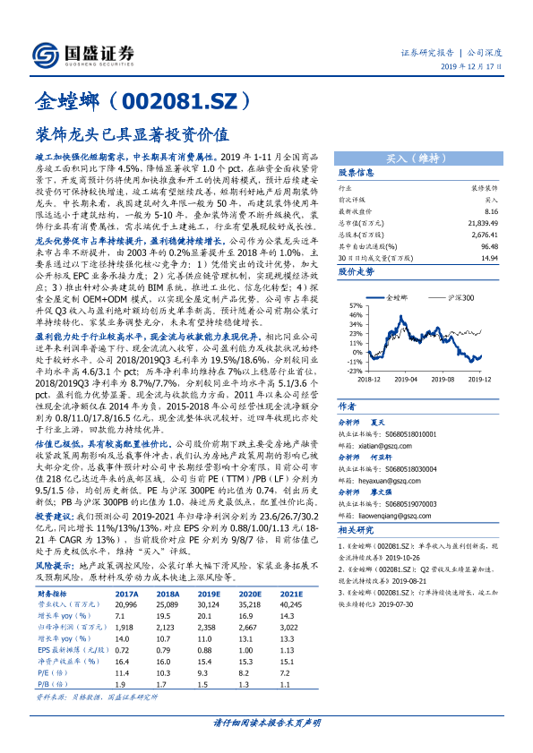 【国盛证券】【20191217】金螳螂(002081.SZ)装饰龙头已具显著投资价值-15页