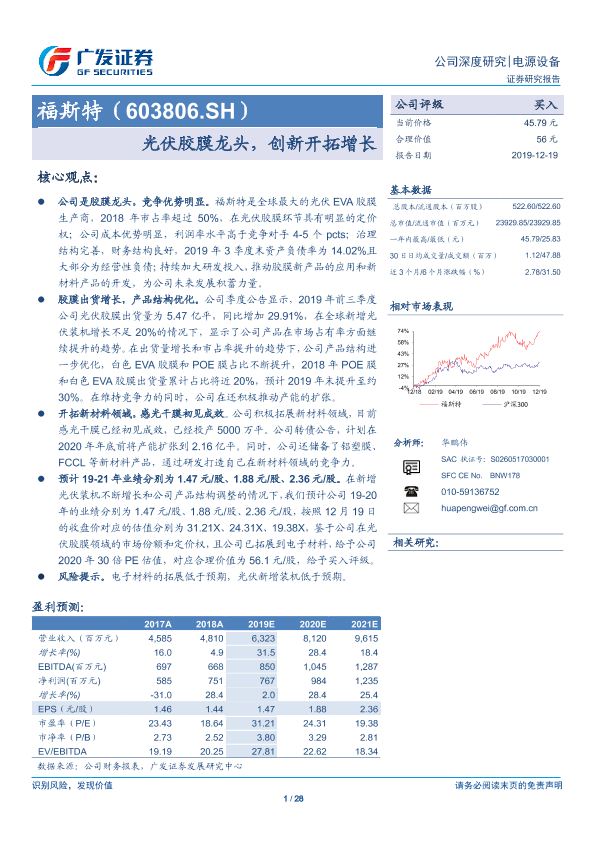 【广发证券】【20191219】福斯特(603806.SH):光伏胶膜龙头,创新开拓增长-28页