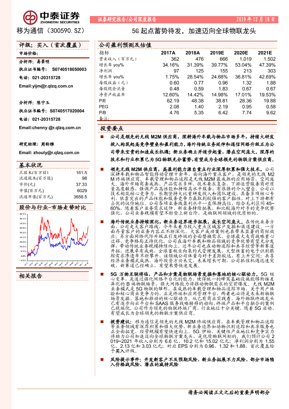 【中泰证券】【20191218】5G起点蓄势待发,加速迈向全球物联龙头-31页
