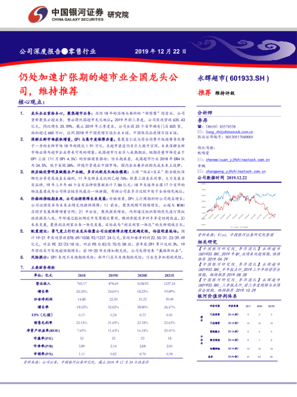 【银河证券】【20191222】仍处加速扩张期的超市业全国龙头公司,维持推荐-43页