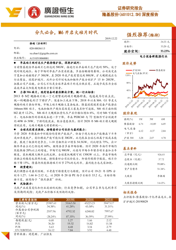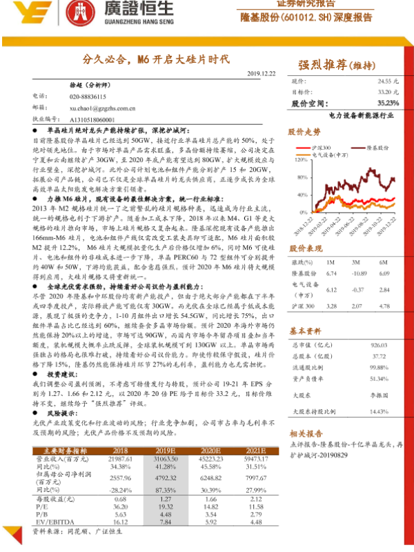 【广证恒生】【20191222】20191222-广证恒生证券研究所-隆基股份-601012.SH-深度报告:分久必合,M6开启大硅片时代-24页