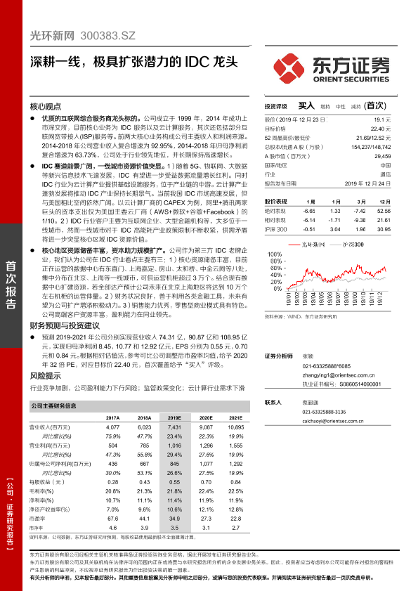 【东方证券】【20191224】深耕一线,极具扩张潜力的IDC龙头-20页