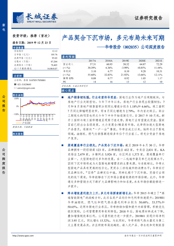 【长城证券】【20191223】20191223-长城证券-华帝股份-002035.SZ-公司深度报告:产品契合下沉市场,多元布局未来可期-31页