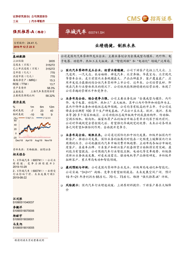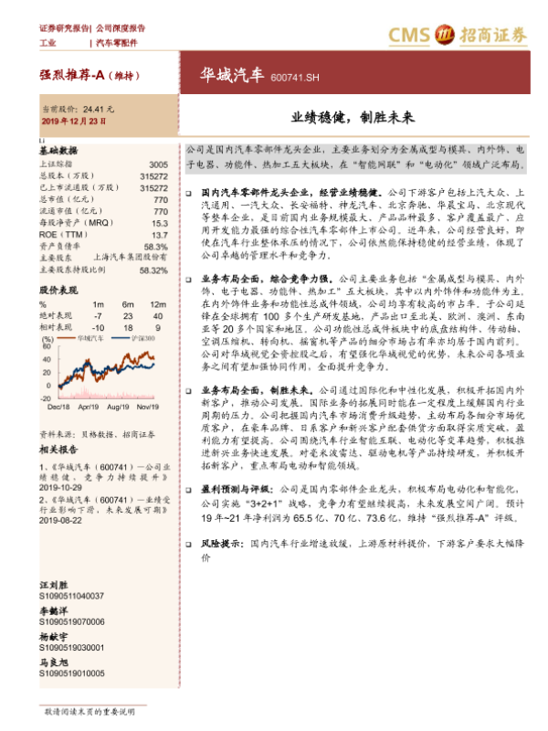 【海通证券】【20191223】华域汽车-600741.SH-业绩稳健,制胜未来-20页