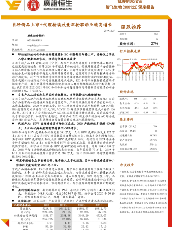 【广证恒生】【20191227】20191227-广证恒生证券研究所-智飞生物-300122.SZ-深度报告:自研新品上市+代理持续放量双轮驱动业绩高增长-34页