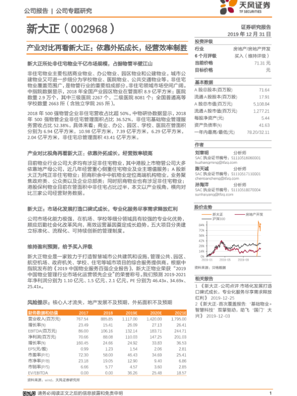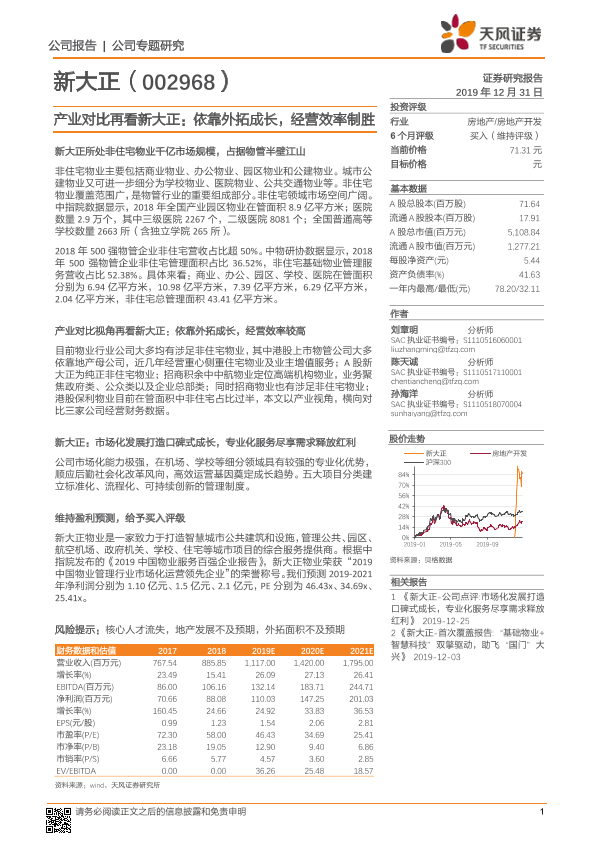 【天风证券】【20191231】20191231-天风证券-新大正-002968.SZ-产业对比再看新大正:依靠外拓成长,经营效率制胜-21页