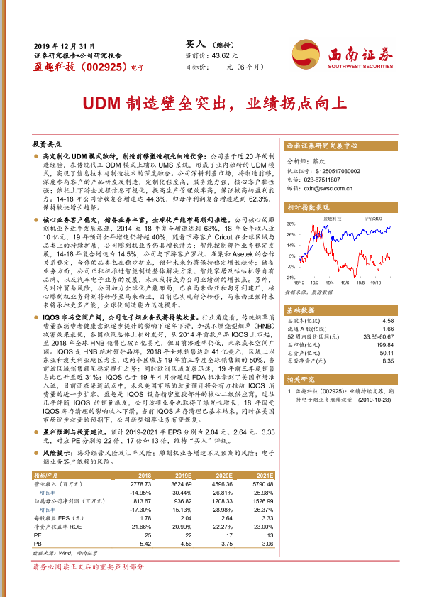 【西南证券】【20191231】盈趣科技-UDM制造壁垒突出,业绩拐点向上-27页
