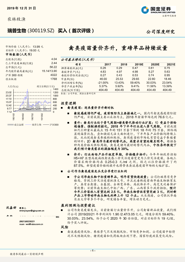 【国金证券】【20191231】瑞普生物-300119.SZ-禽类疫苗量价齐升,重磅单品持续放量-24页