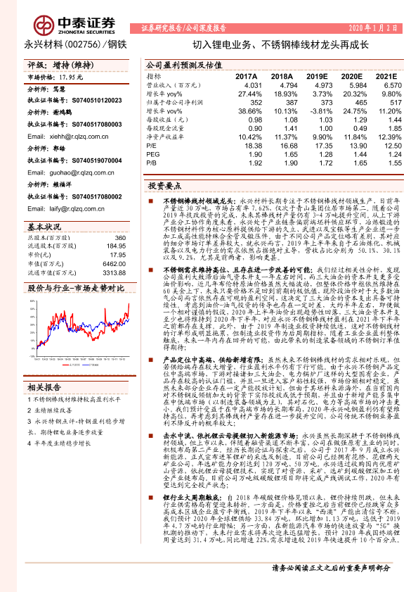 【中泰证券】【20200102】永兴材料-切入锂电业务、不锈钢棒线材龙头再成长-22页