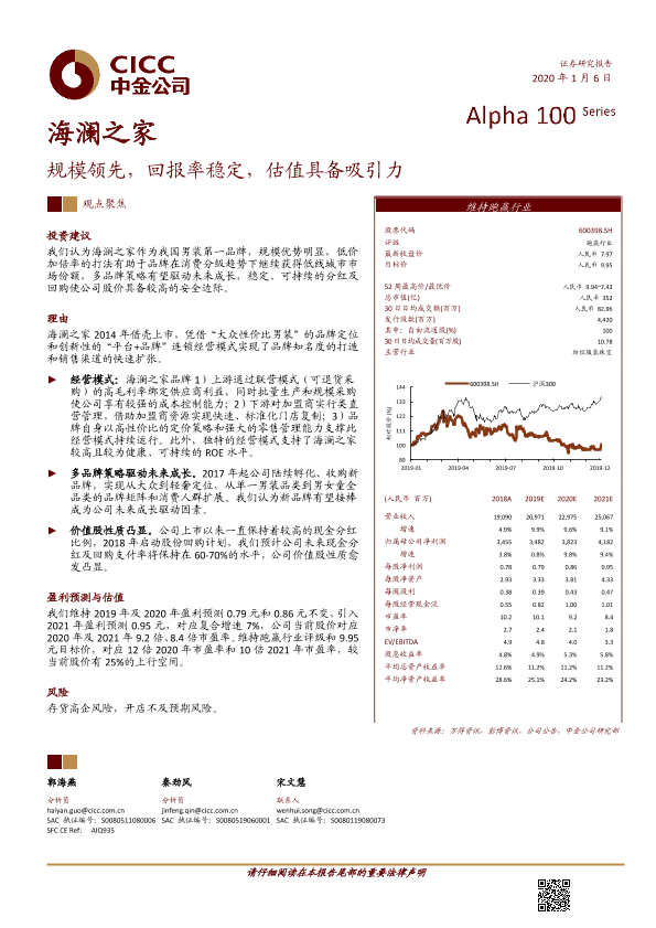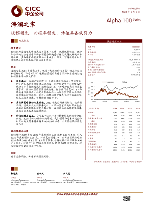 【中金公司】【20200106】海澜之家-规模领先,回报率稳定,估值具备吸引力-22页