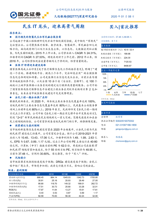 【国元证券】【20200108】久远银海-民生IT龙头,迎来高景气周期-28页