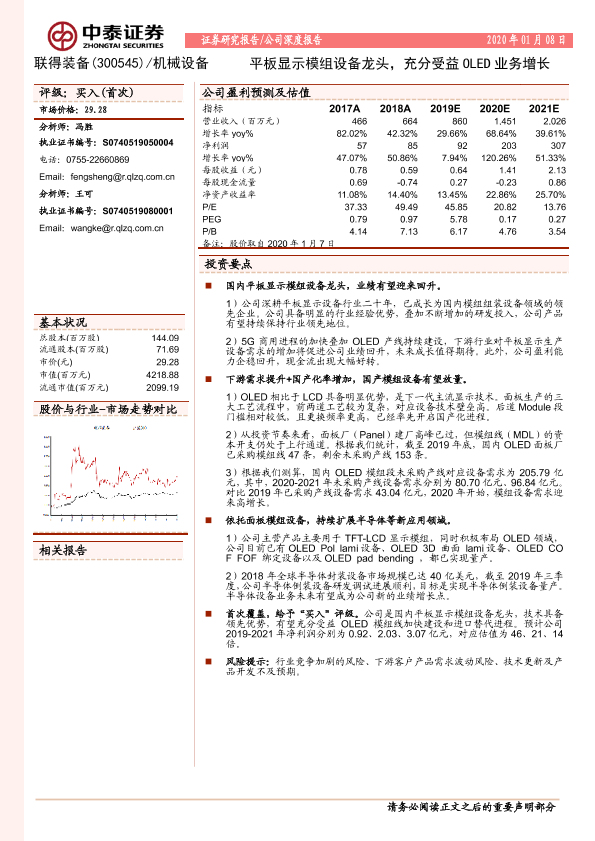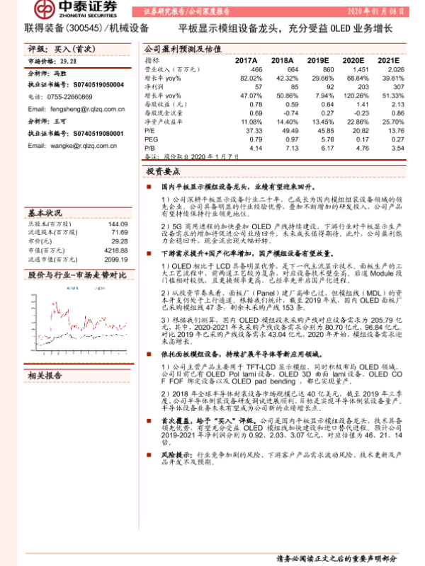 【中泰证券】【20200108】20200108-中泰证券-联得装备-300545.SZ-平板显示模组设备龙头,充分受益OLED业务增长-20页
