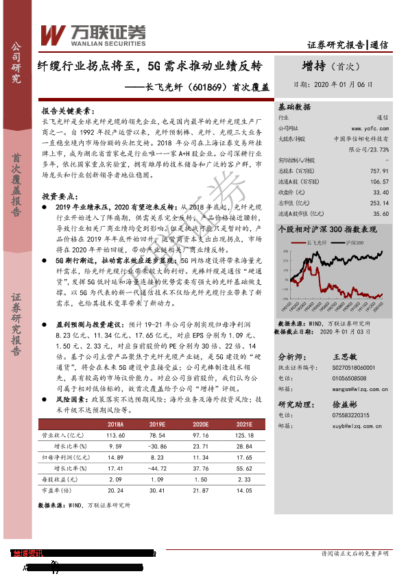 【万联证券】【20200106】20200106-万联证券-长飞光纤-601869.SH-首次覆盖:纤缆行业拐点将至,5G需求推动业绩反转-26页