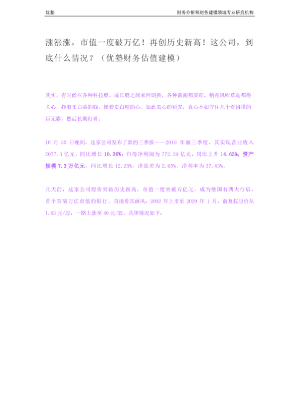 【优塾】【20200110】涨涨涨,市值一度破万亿!再创历史新高!这公司,到底什么情况?(优塾财务估值建模)-76页