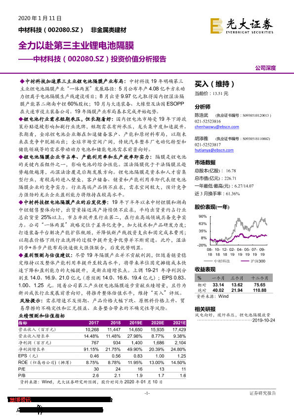【光大证券】【20200111】全力以赴第三主业锂电池隔膜——中材科技(002080.SZ)投资价值分析报告-26页