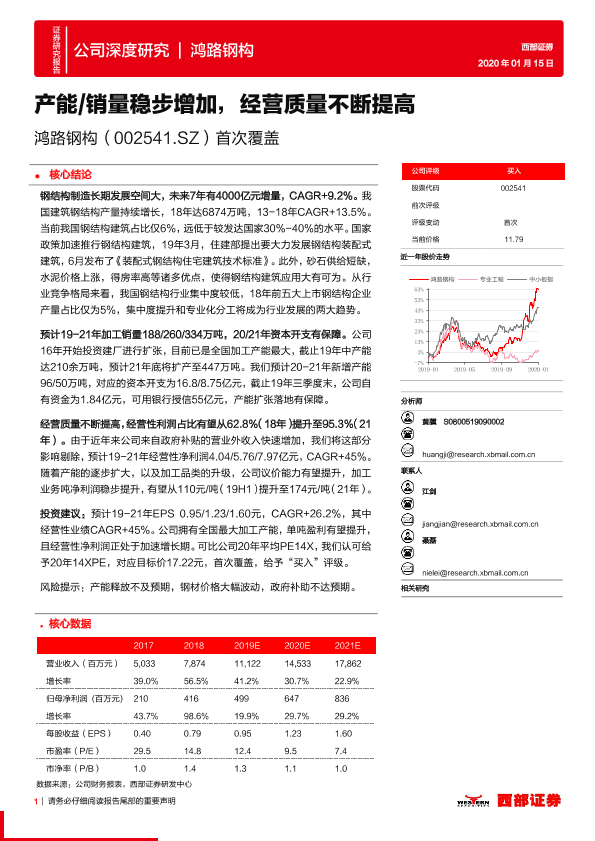 【西部证券】【20200115】20200115-西部证券-鸿路钢构-002541.SZ-首次覆盖:产能 销量稳步增加,经营质量不断提高-29页