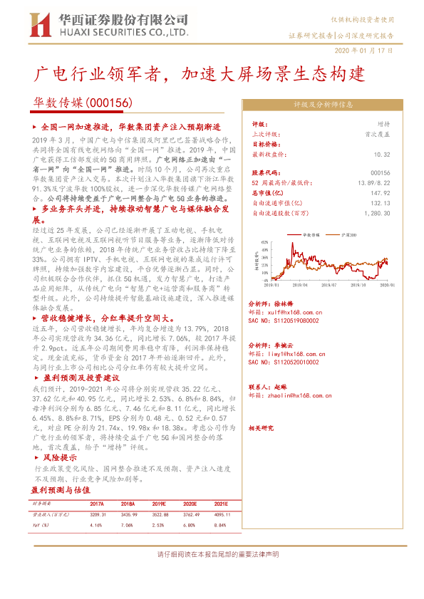 【华西证券】【20200117】华西证券-华数传媒-000156.SZ-广电行业领军者,加速大屏场景生态构建-28页