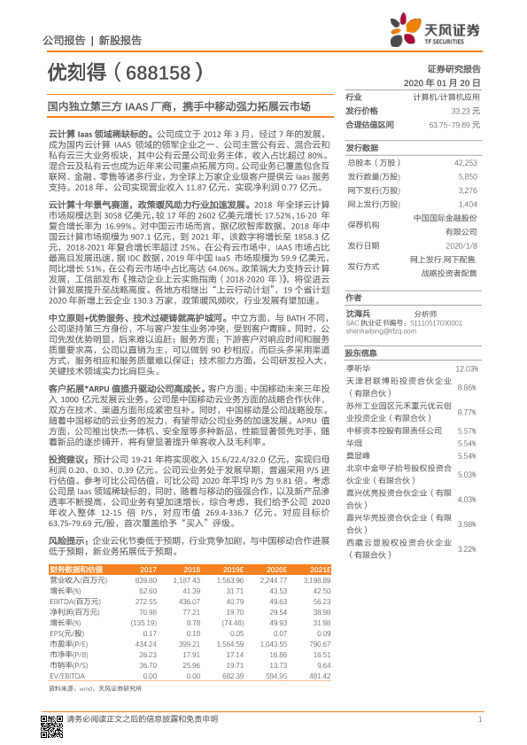 【天风证券】【20200120】国内独立第三方IAAS厂商,携手中移动强力拓展云市场-21页